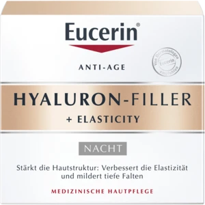 Die Eucerin HYALURON-FILLER + ELASTICITY Nachtpflege stärkt die Hautstruktur, indem sie ihre Elastizität verbessert und tiefe mildert.