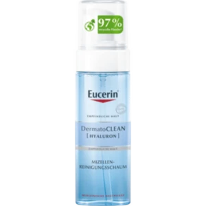 Eucerin DermatoCLEAN [HYALURON] Mizellen-Reinigungsschaum ist ein sanftes, aber gründliches Gesichtsreinigungsprodukt. Er entfernt sanft und doch gründlich Unreinheiten, Make-up und überschüssigen Talg in einem Schritt, ohne die Haut auszutrocknen. Zusätzlich wird nachweislich auch wasserfester Gesichts-Sonnenschutz¹ mit sehr hohem Lichtschutzfaktor entfernt.