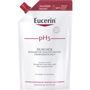 Spannungsgefühl, Rötungen und Juckreiz können die Reaktion von sensibler Haut auf Umweltreize sein. Daher braucht die angegriffene Haut eine besonders milde Reinigung, die die physiologische Balance der Haut aufrechterhält. Eucerin pH5 Duschöl wurde speziell für die pflegende Reinigung strapazierter Haut entwickelt.