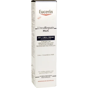 Die Eucerin UreaRepair PLUS 30% Urea Creme ist geeignet für hyperkeratotische (med. für verdickt) Hautzustände und psoriatische Plaques. Auch zur adjuvanten Pflege in Kombination mit vom Hautarzt empfohlenen Behandlungsmaßnahmen geeignet.