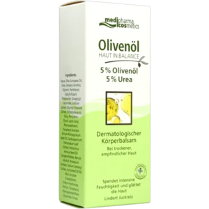 Der Dermatologische Körperbalsam mit der Wirkstoffkombination aus 5 % Olivenöl und 5 % Urea, spendet trockener Haut Feuchtigkeit und pflegt sie zart und geschmeidig. Olivenöl führt in Kombination mit Urea, einem natürlichen Feuchthaltefaktor, der Haut die verlorene Feuchtigkeit wieder zu. Sie wird gespeichert und schützt die Haut somit vor weiterem Austrocknen. Der Juckreiz kann dadurch gemindert werden.