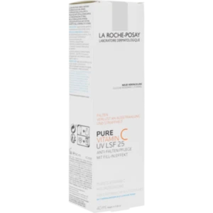 Mit der PURE VITAMIN C UV LSF25 Anti-Aging-Creme mit Fill-in Effekt werden bereits ausgeprägte Falten gemildert. Angereichert mit Thermalwasser aus La Roche-Posay wirkt die Anti-Aging-Pflege hautberuhigend. PURE VITAMIN C UV LSF25 mit Vitamin C, fragmentiertem Hyaluron und Madecassoside versorgt die Haut langanhaltend mit Feuchtigkeit, stimuliert die Kollagensynthese und wirkt antioxidativ gegen freie Radikale. Das Mexoryl® Filtersystem mit UVB LSF 25 – UVA PPD 10 schützt die Haut vor UVB-Strahlen und den täglichen Schäden durch UVA-Strahlen. Für mehr Straffheit und einen ebenmäßigen Teint eignet sich PURE VITAMIN C UV LSF25 als Anti-Aging-Pflege besonders für empfindliche Haut.